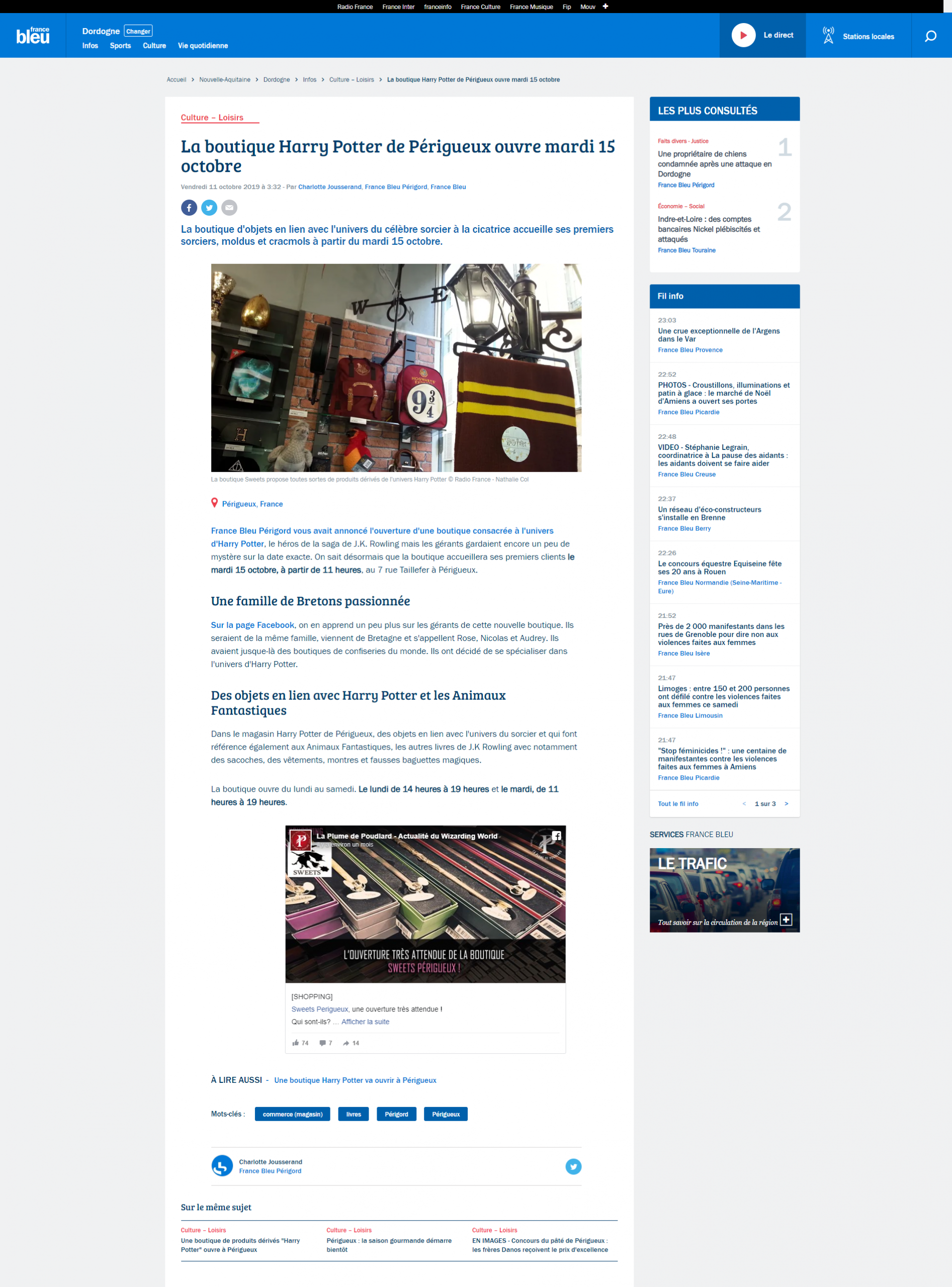 Le 11 oct. 2019 : France Bleu